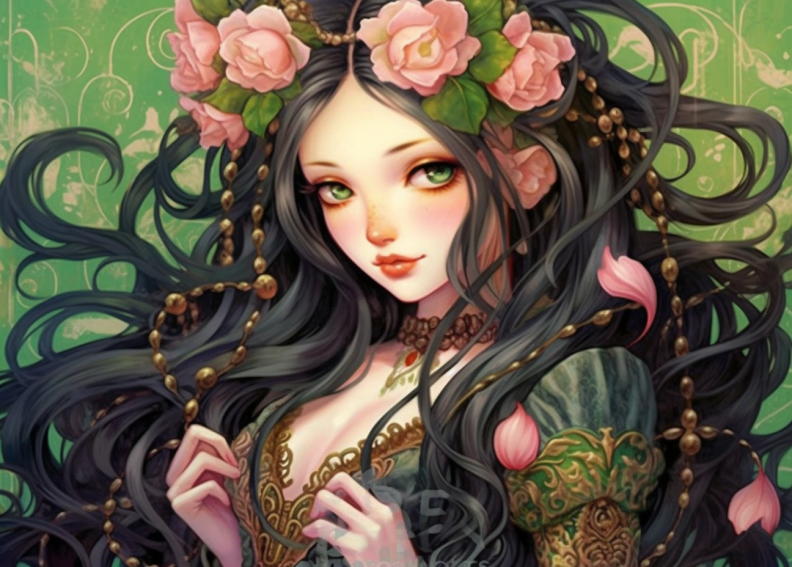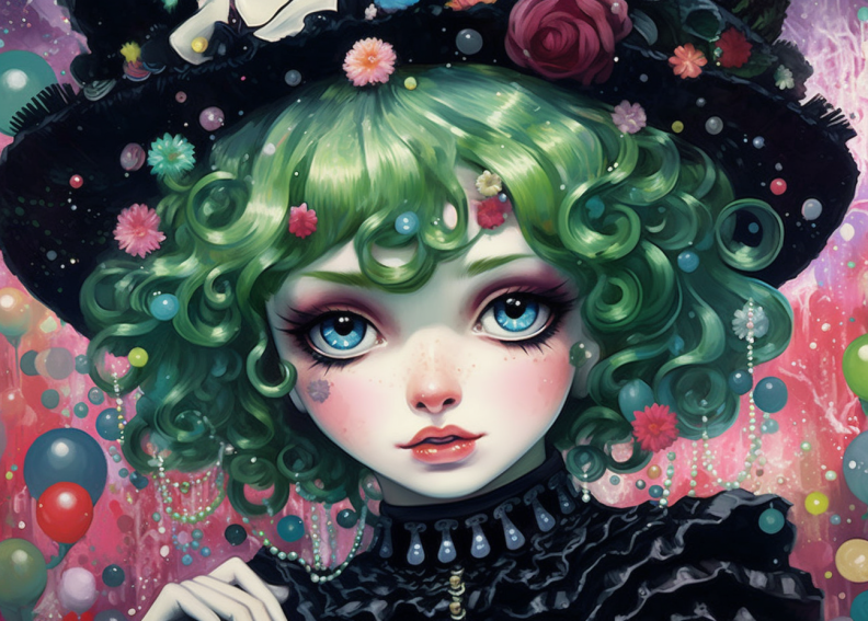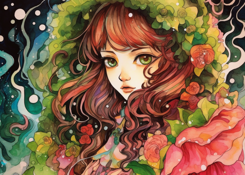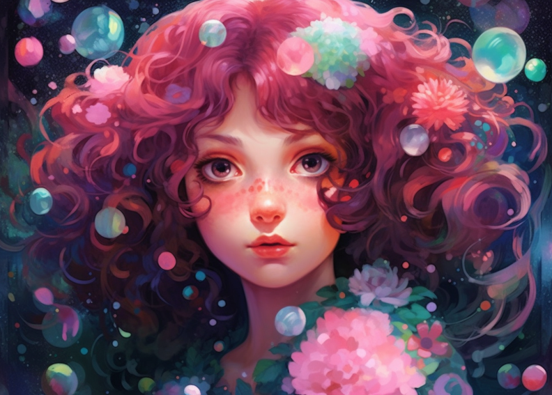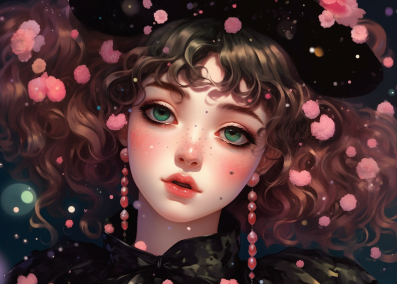 이번에는 ai를 이용하여 파마머리 하이틴 소녀 애니 캐릭터를 그려보았습니다!