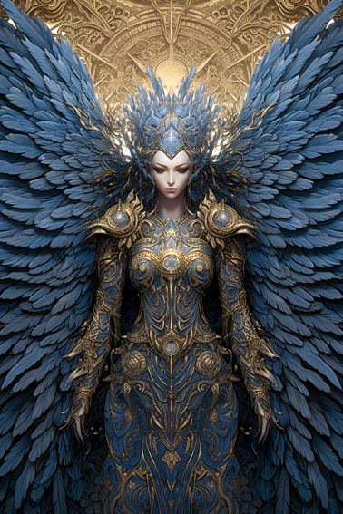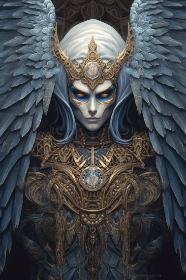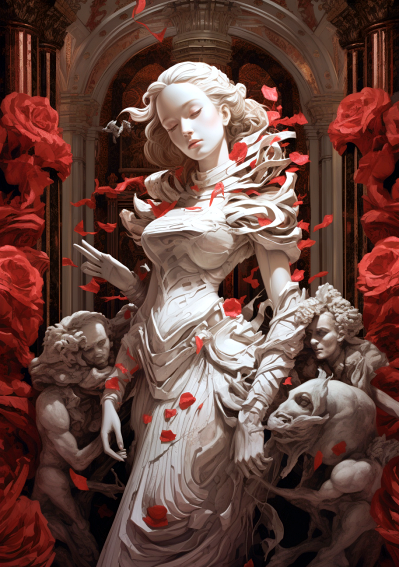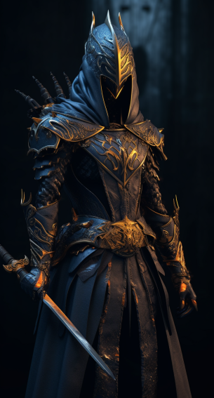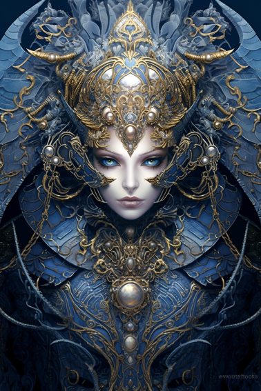 강철갑옷을 입은 지옥의 정예전사 일러스트 , 지옥의 여신 조각상